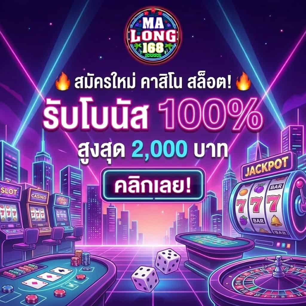 สมัครใหม่คาสิโนออนไลน์ สล็อต รับโบนัสทันที 100% สูงสุด 2000 บาท - มา ลอง 168